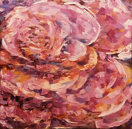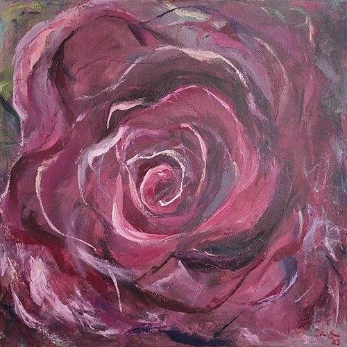 Working in a style that merges Impressionism with Abstract Art, I aimed to capture the essence and movement of the bloom rather than a literal depiction. Using thick, textural strokes and a swirling composition, I create an abstract flower that explodes with passion. The vibrant reds, pinks, and golds are layered to build an effect of light and life.